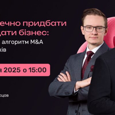 Вебінари Як безпечно придбати чи продати бізнес: покроковий алгоритм M&A для власників Запрошуємо зареєструватись на безкоштовний вебінар для бізнесу на тему: “Як безпечно ... 09.12.2025
