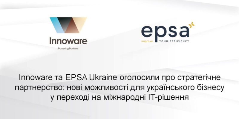 Компанії Innoware та EPSA Ukraine оголосили про підписання договору про стратегічне партнерство, основна мета якого допомога українському бізнесу відмовитись від використання ворожого (російського) програмного забезпечення і перейти на сучасні міжнародні ERP, CRM рішення від одного з провідних світових постачальників програмного забезпечення та комп’ютерних технологій – компанії Microsoft.