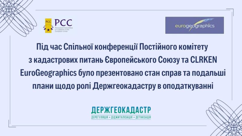 Під час Спільної конференції Постійного комітету з кадастрових питань Європейського Союзу та CLRKEN EuroGeographics було презентовано стан справ та подальші плани щодо ролі Держгеокадастру в оподаткуванні