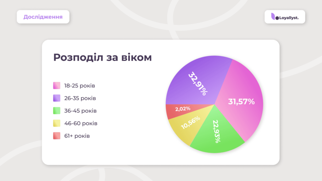 Молодь до 35 років — ядро аудиторії: 18–35 років становить 64,48 % користувачів. Це міленіали та покоління Z, які виросли зі смартфонами та цінують цифрово-орієнтовані підходи. Вони охоче користуються програмами лояльності, якщо це швидко та просто.