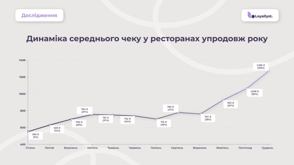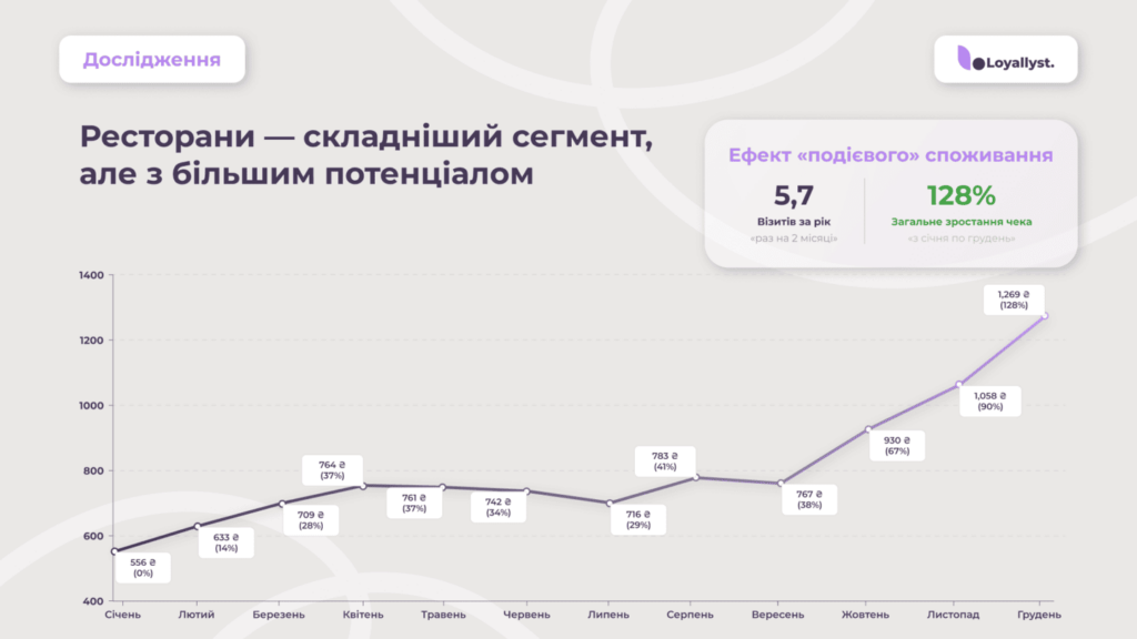 Ресторани показали найнижчий Retention (59 %), проте найбільше зростання середнього чека.