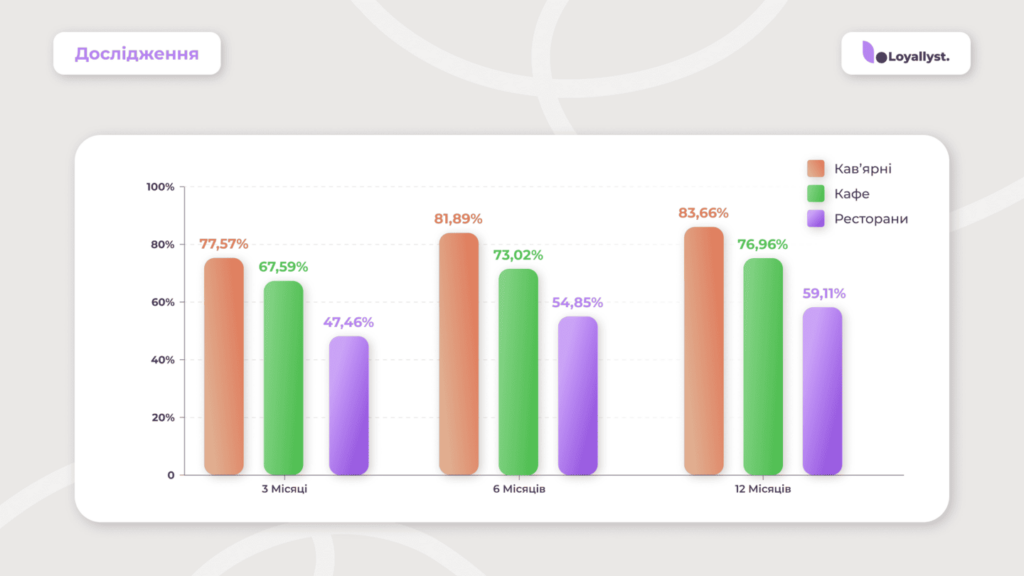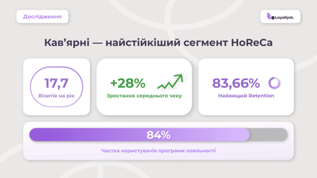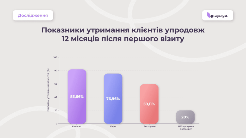 2. Програми лояльності забезпечують 84 % утримання клієнтів у кав’ярнях