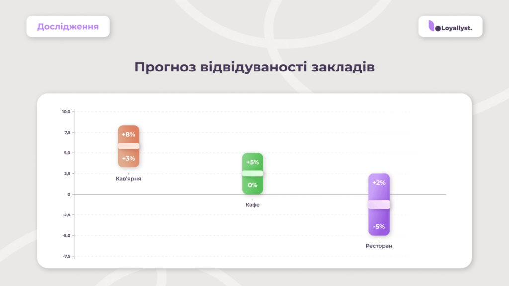 Прогноз на 2026 рік для HoReCa передбачає зростання середнього чека на 5–8 % через інфляцію та подорожчання послуг, тоді як відвідуваність залишатиметься на поточному рівні або незначно зросте. Стратегічним пріоритетом залишається утримання клієнта та збільшення його LTV.