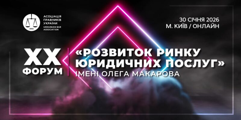 Асоціація правників України запрошує на ХХ Форум «Розвиток ринку юридичних послуг» імені Олега Макарова. Це щорічна подія Асоціації правників для керівників юридичного бізнесу, які відповідають за розвиток практик, команд і клієнтських відносин, а також для молодих правників, які прагнуть розвивати лідерські, управлінські навики та переймати кращий досвід.